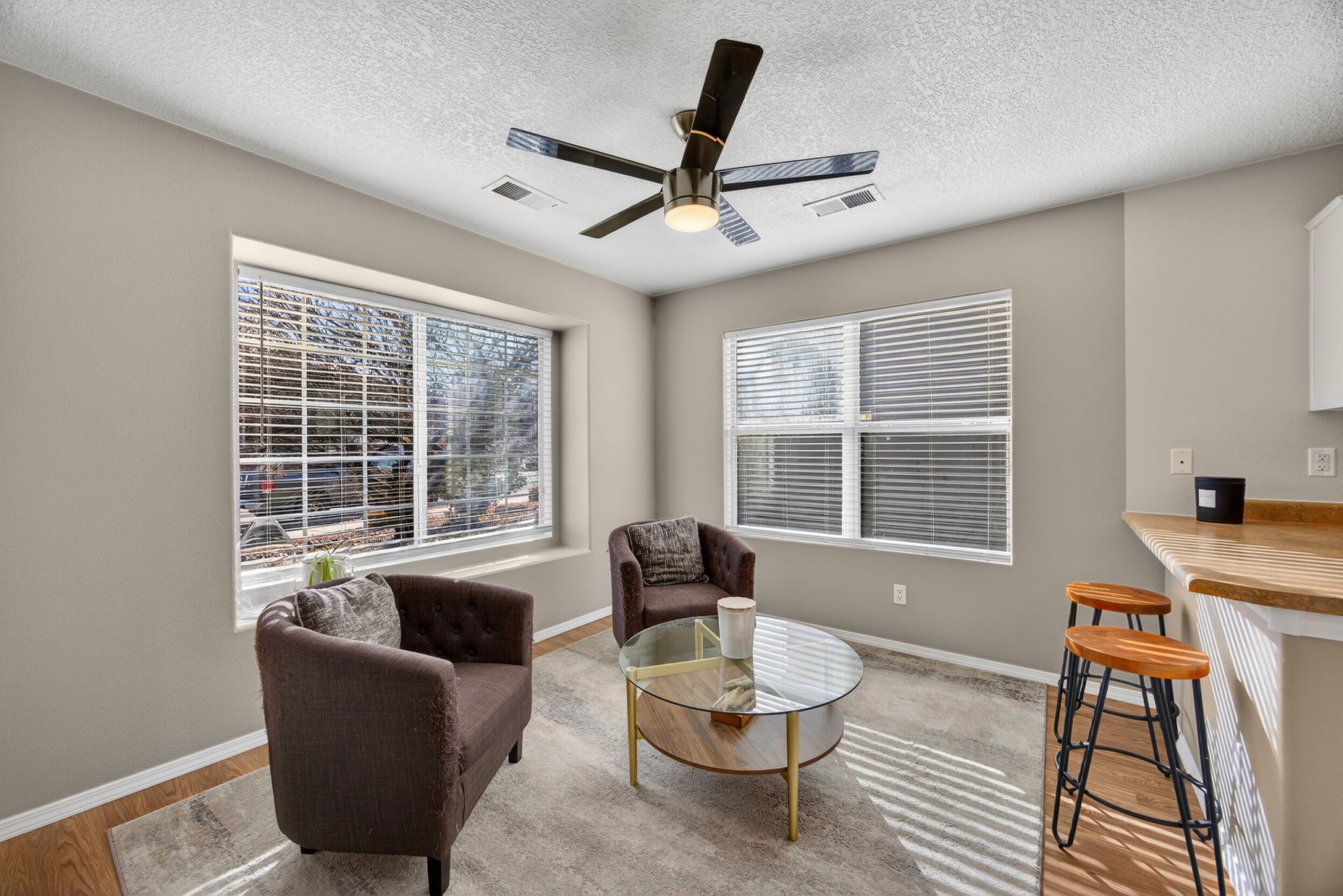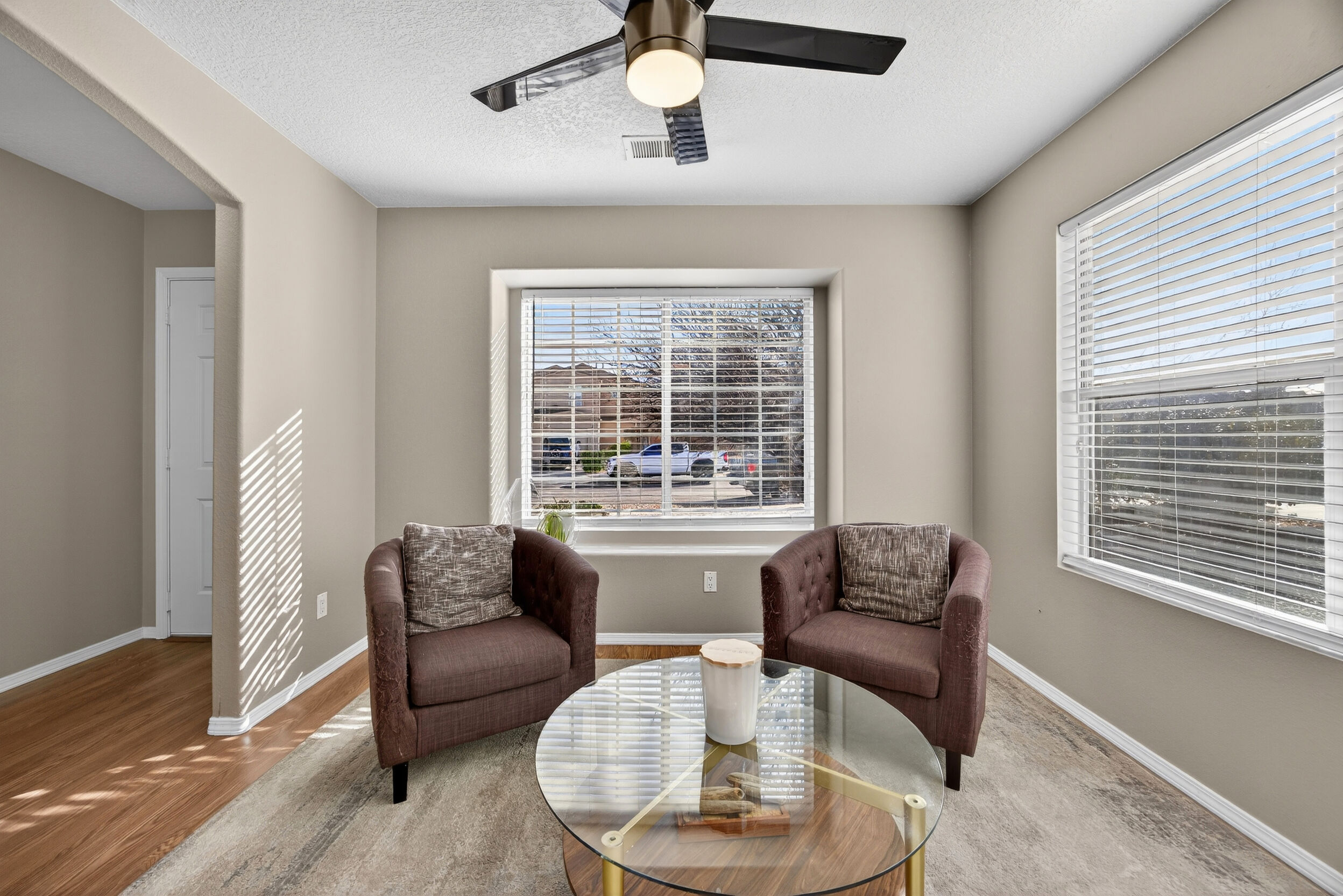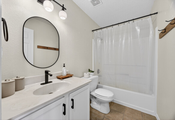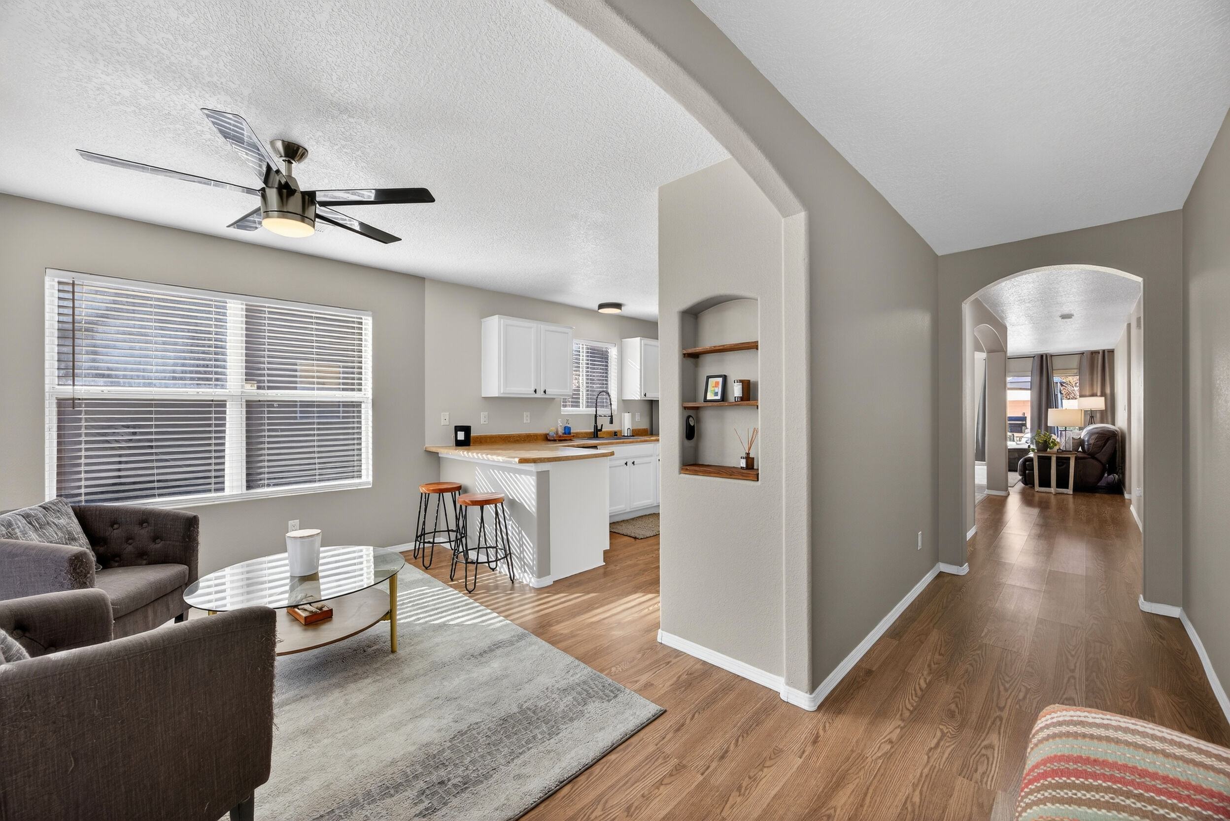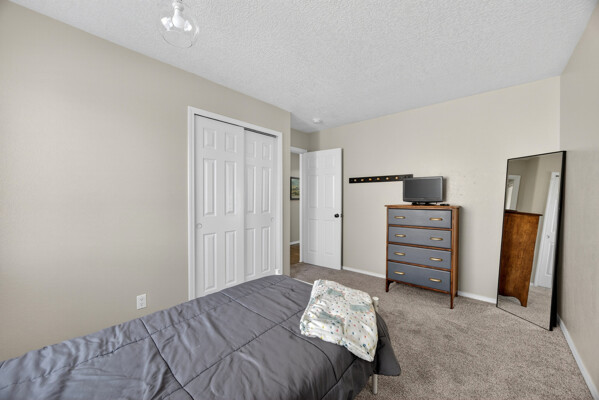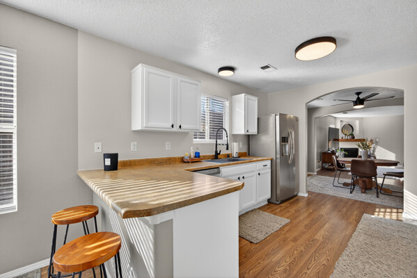 The master bedroom is a peaceful retreat with an en-suite bathroom and walk-in closet. Two additional bedrooms provide plenty of space for guests or a home office. Outside, the backyard offers a private oasis with a patio and room for gardening.